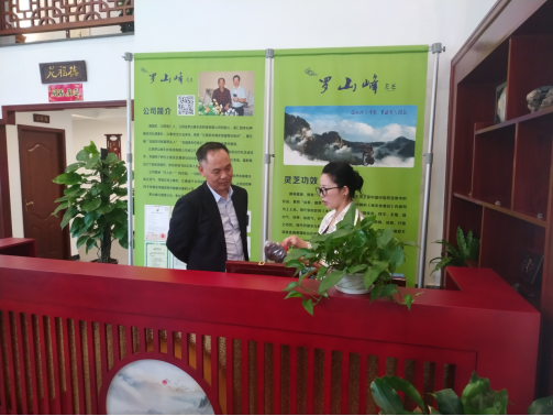 黃有盛一行先后調(diào)研了羅山峰公司崇仁縣靈芝生產(chǎn)基地、展示營(yíng)銷館。在聽取了陳琴對(duì)羅山峰公司經(jīng)營(yíng)現(xiàn)狀(以土黑靈芝仿生種植為主、食用菌、中草藥種植為輔,基地面積3萬(wàn)余畝,年產(chǎn)值近億元)、經(jīng)營(yíng)模式(公司+農(nóng)民合作社+家庭農(nóng)場(chǎng)+農(nóng)戶)、產(chǎn)業(yè)扶貧成效(帶動(dòng)2個(gè)省級(jí)貧困村、600余戶農(nóng)民脫貧)等方面的匯報(bào)后,黃有盛對(duì)羅山峰公司的發(fā)展理念和取得的成效給予肯定。