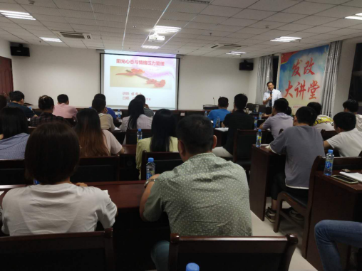 傅同如老師以“什么是陽光心態(tài)”為切入點,圍繞“心態(tài)、情緒與壓力之間的關(guān)系、壓力的來源、應對壓力的策略”等內(nèi)容,給大家上了一堂實用的心理減壓課、生動的人生哲學課。傅老師的講課集生動性、趣味性、實用性于一體, 寓哲理于案例分析之中,敘事理于幽默語言之中,引導大家如何增強職業(yè)信念、培養(yǎng)健康的情緒情感,努力做到快樂工作、快樂生活。