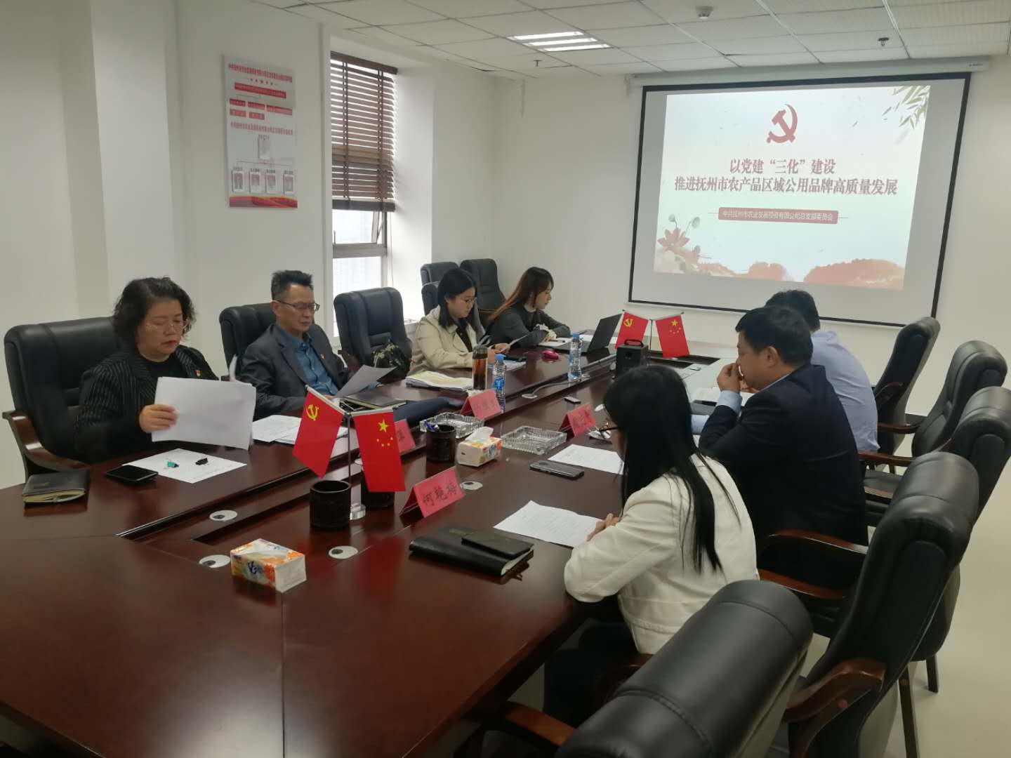 10月29日下午,市國資委副主任湯勝生帶隊深入市農(nóng)發(fā)投公司實地檢查驗收第一批基層黨建“三化”建設(shè)工作。市國資委黨工委“三化”建設(shè)驗收工作組成員張萍、王佩陪同,市農(nóng)發(fā)投公司機關(guān)黨支部書記、副總經(jīng)理周志奇參加匯報會。